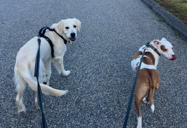 Gabrielle was wonderful with my high energy young dog, Rhys. Rhys go along very well with her beautiful dog Nova-- hiking and romping outside. He came home happy, tired, and content. I highly recommend Gabrielle and would happily rebook.